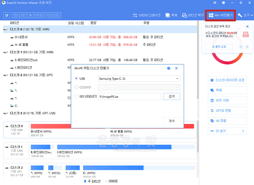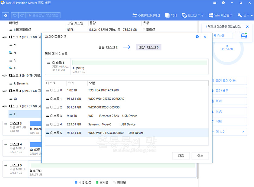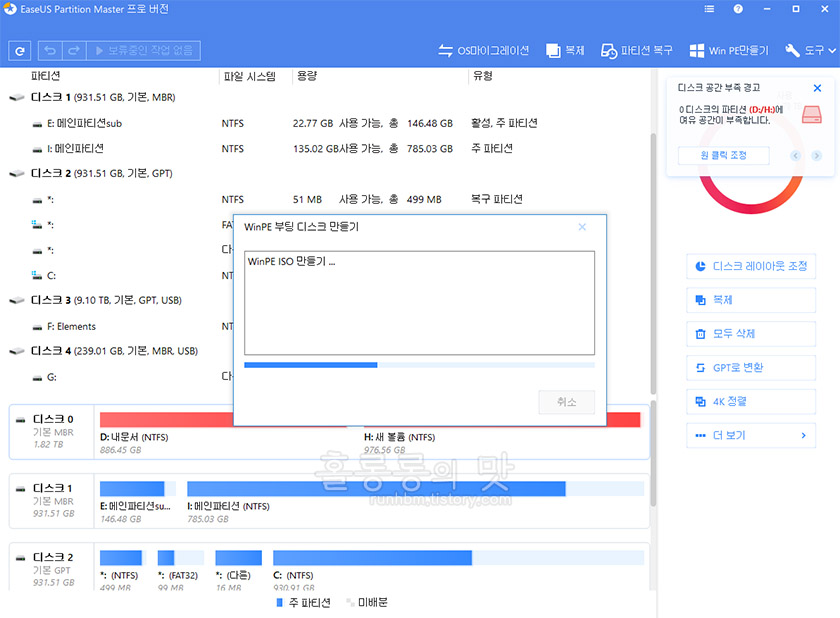 파티션 관리 프로그램 '이지어스 파티션 마스터 프로' 사용 후기의 맛