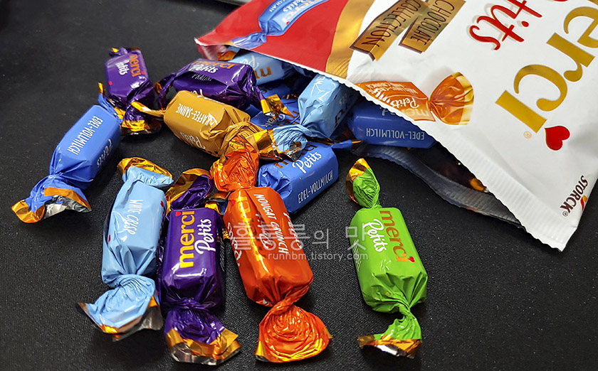 먹기 편한 메르시 쁘띠 초콜릿입니다.